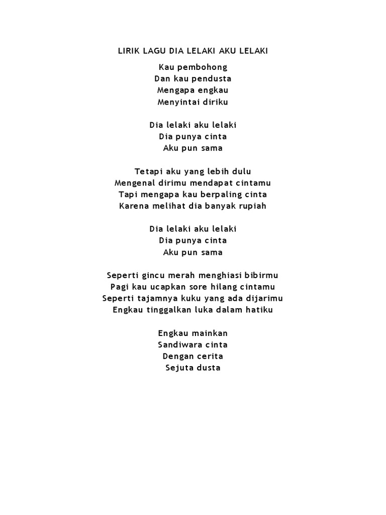 Lirik Lagu Dia Lelaki Aku Lelaki Pdf